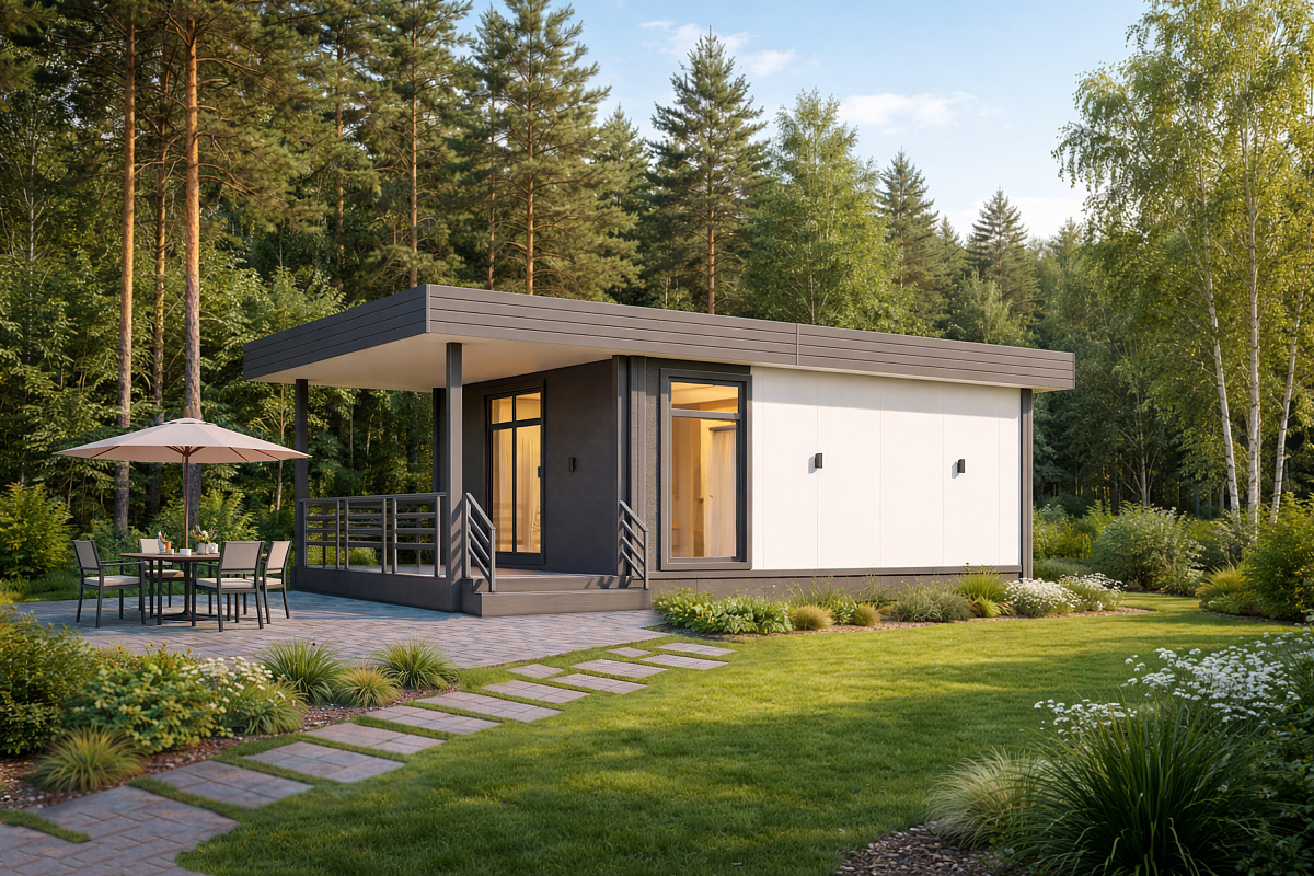 Домокомплект DOORHAN 59 ПРО — это компактный загородный дом для отдыха и сезонного проживания. Отдельная спальня формирует приватную зону, а кухня-гостиная позволяет нескольким людям комфортно проводить время вместе. В доме удобно отдыхать, готовить, смотреть телевизор или принимать гостей. Это формат современной продуманной дачи.